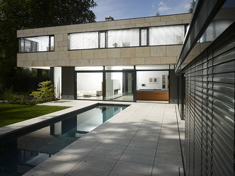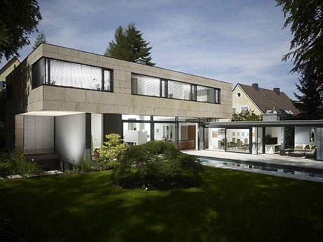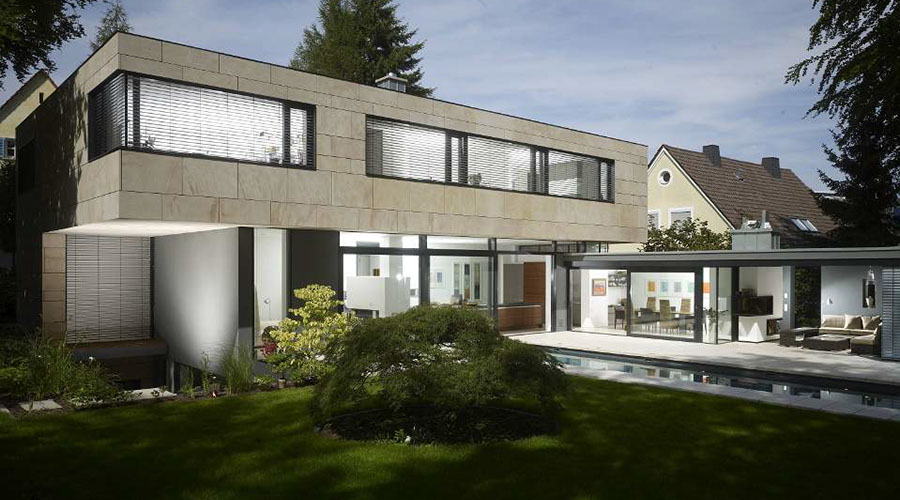 Pfosten- Riegelfassade Schüco FW 50.HI Fensterelemente Schüco AWS 75.SI Sonnenschutz- Raffstore